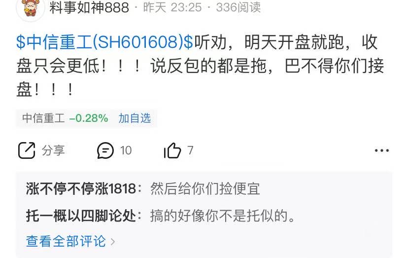 $中信重工(SH601608)$ 下周一还是继续大跌,不要有任何幻想