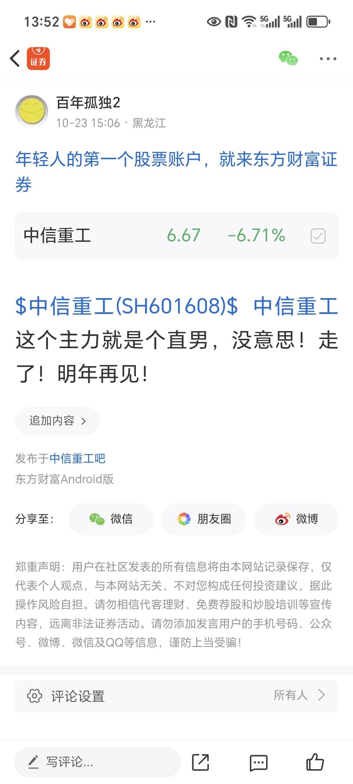 温馨提示: 1.根据《证券法》规定,禁止编造、传播虚假信息或者误导性信息,扰乱证券市场;2.用户在本社区发表的所有资料、言论等仅代表个人观点,与本网站立场无关,不对您构成任何投资建议。用户应基于自己的独立判断,自行决定证券投资并承担相应风险。《东方财富社区管理规定》