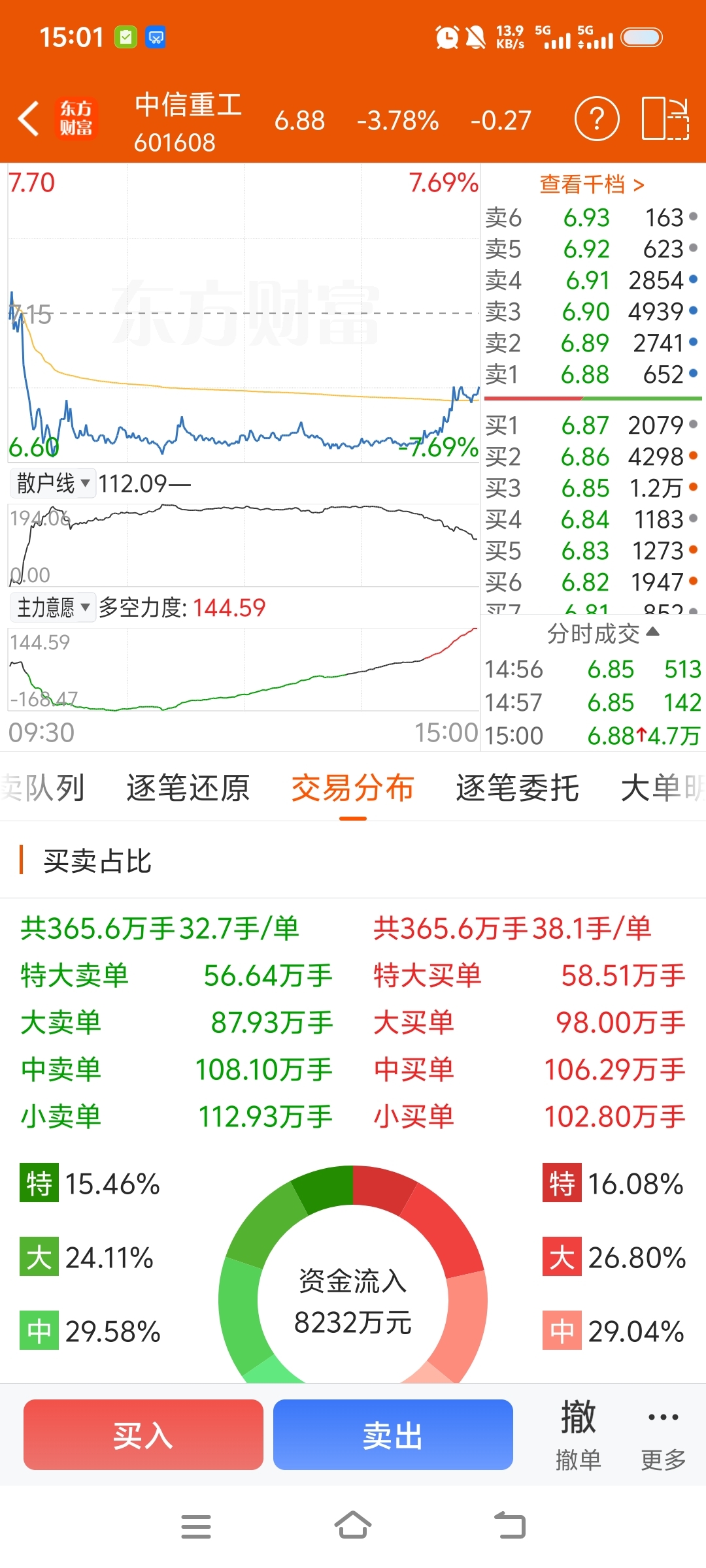 $中信重工(SH601608)$ 进了8000万都没拉起来