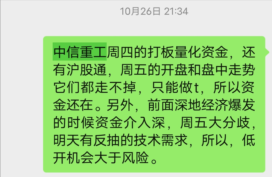 $中信重工(SH601608)$ 今天收获三个涨停,昨天一进二的青岛双星继续涨停看好持有中,昨天午盘的深物业今天涨停看好持有中,早盘集合竞价介入的格尔软件深水大长腿涨停。回来看看中信重工,做了三天,今天上冲五个点的时候全清了,三天30+的利润够了,谢谢中信。晚上复盘继续抓涨停。继续加油。