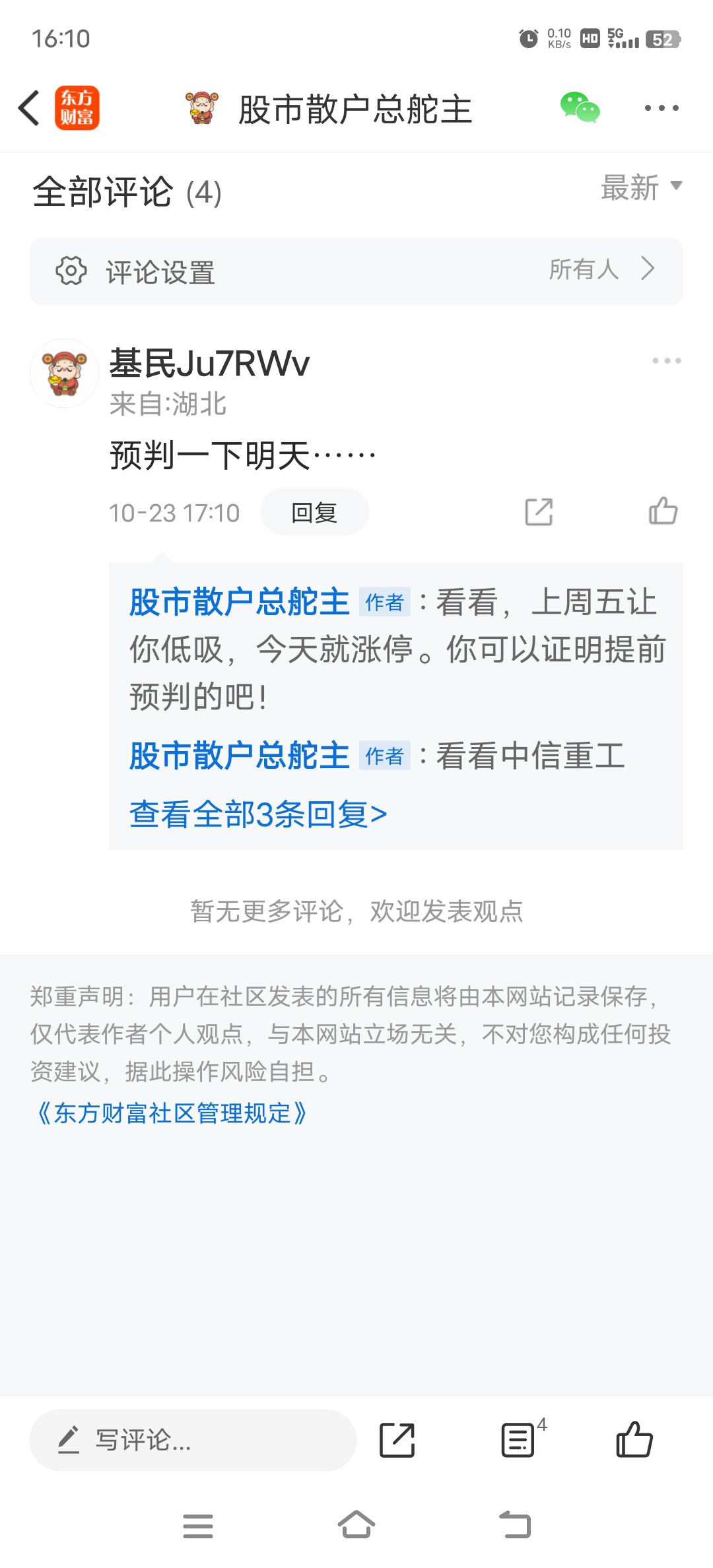 温馨提示: 1.根据《证券法》规定,禁止编造、传播虚假信息或者误导性信息,扰乱证券市场;2.用户在本社区发表的所有资料、言论等仅代表个人观点,与本网站立场无关,不对您构成任何投资建议。用户应基于自己的独立判断,自行决定证券投资并承担相应风险。《东方财富社区管理规定》