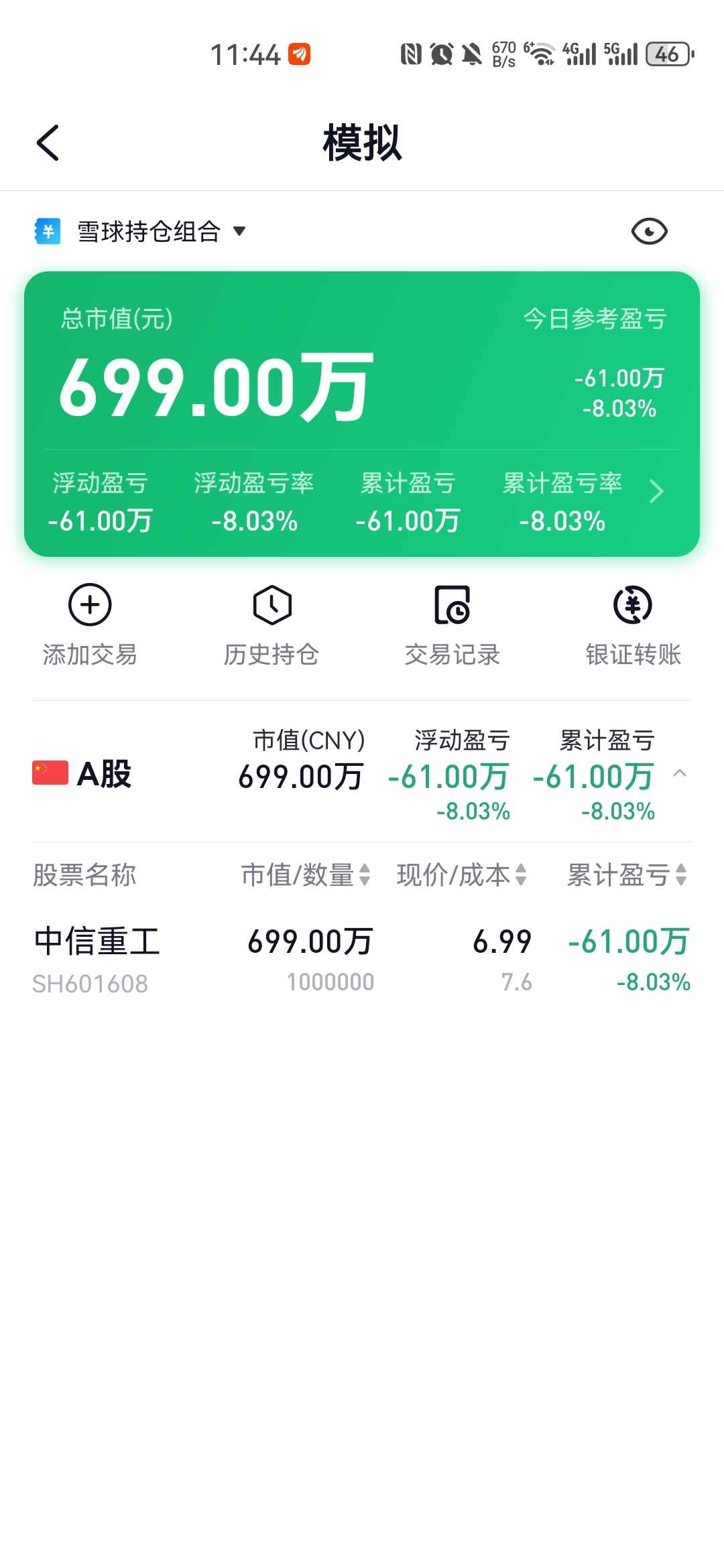 $中信重工(SH601608)$ 模拟盘玩一玩,搞个100万股,我是大佬级