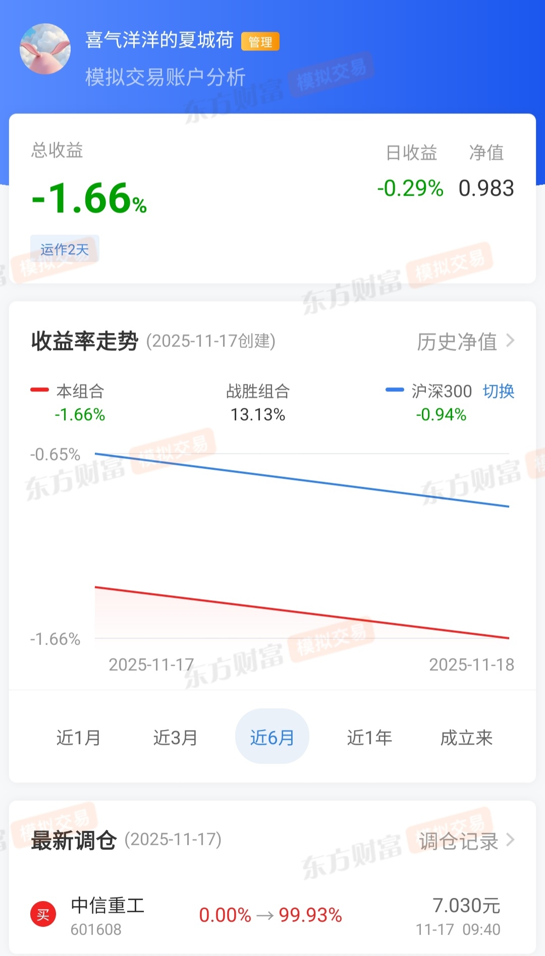 $中信重工(SH601608)$ 不动如山,咱别动口@闲人日记 < ,老师咱们比比长线收益,先按你的25年年线收官,昨天开始计算你的收益曲线,