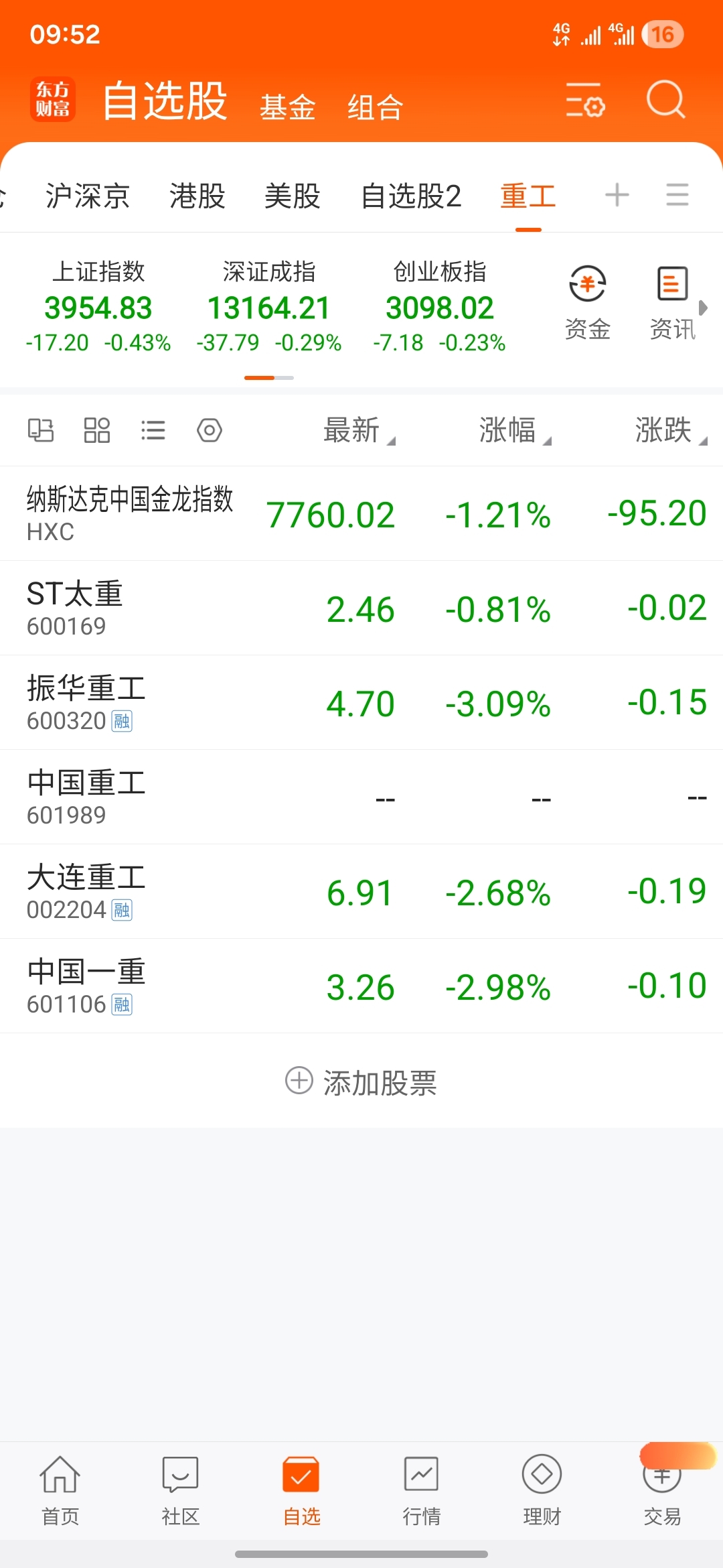 $中信重工(SH601608)$ 哥几个都回到了之前跟大盘的模式。大盘涨,,弱弱的跟。大盘跌,强力跟。