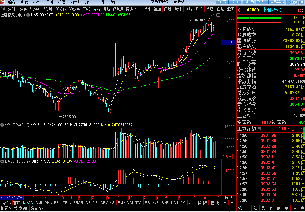 最关键的是 大盘的周线MACD 高位死叉了, 这种周线级别的MACD 高位死叉,