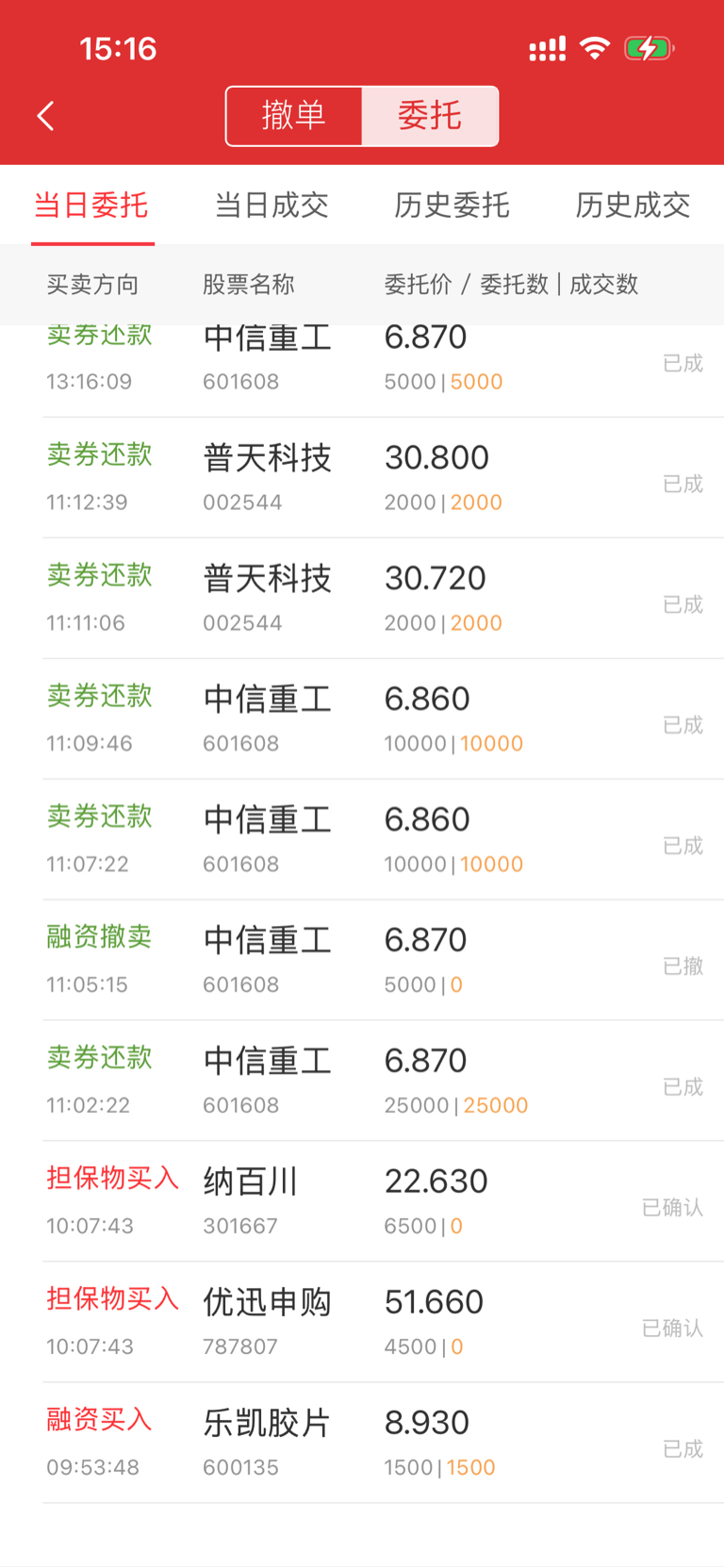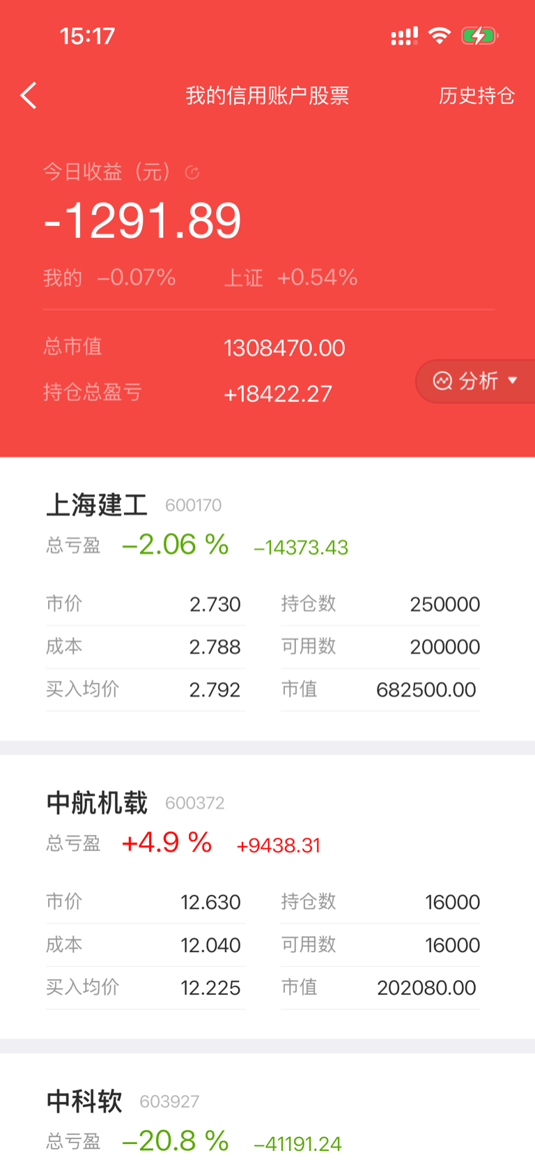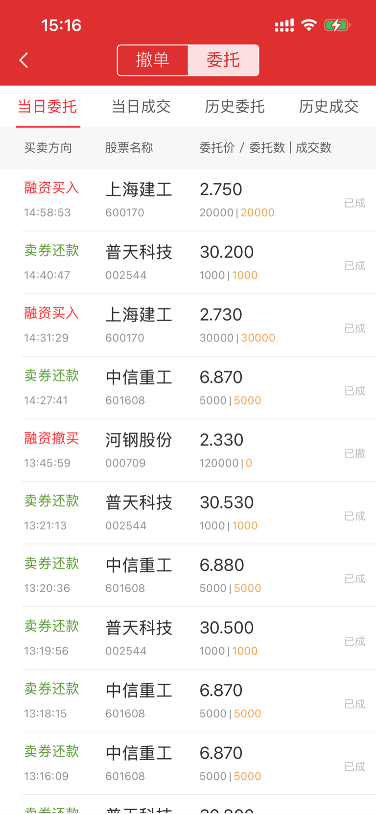 今日重工出货60000股,留20000股底仓,2.73加仓50000股建工