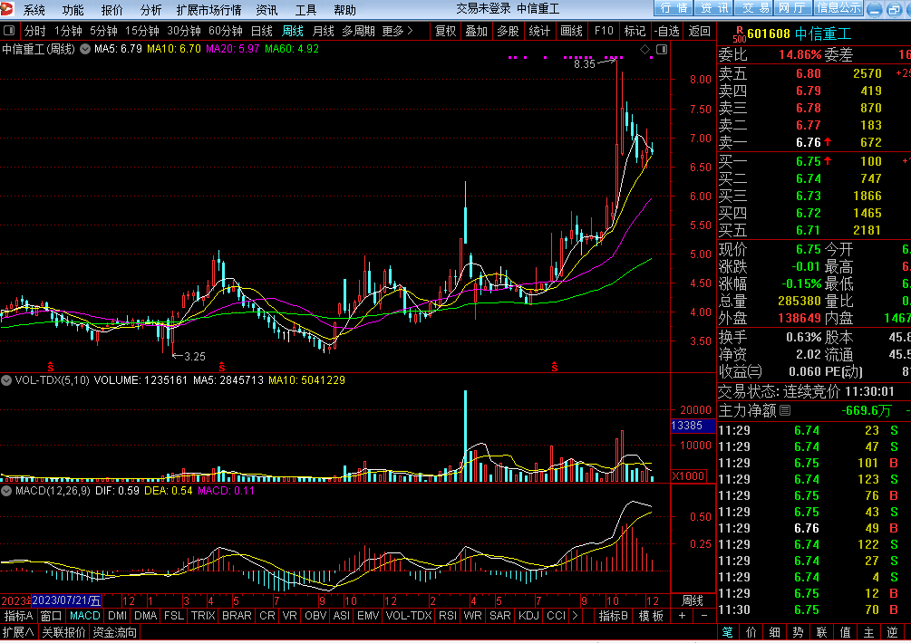 大家小心点啊, 信工的周线MACD 即将高位大圆弧头死叉了