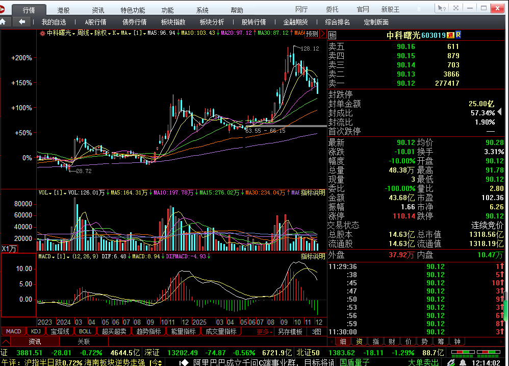看看今天跌停的中科曙光 是不是周线MACD 也高位死叉了