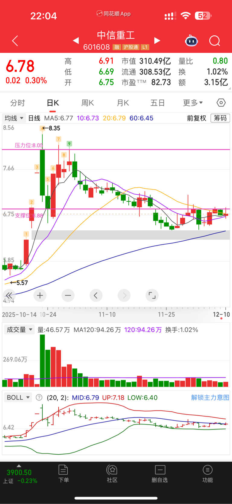 $中信重工(SH601608)$ 家人们,我睡不着!手机上七八个软件看来看去,全仓了这一只,好煎熬