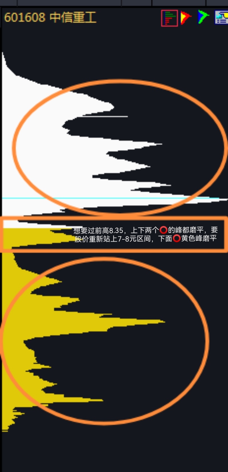 $中信重工(SH601608)$ 6元以下筹码峰不上移是难涨,除非有特别的重大利好,短线可以远离双峰股了
