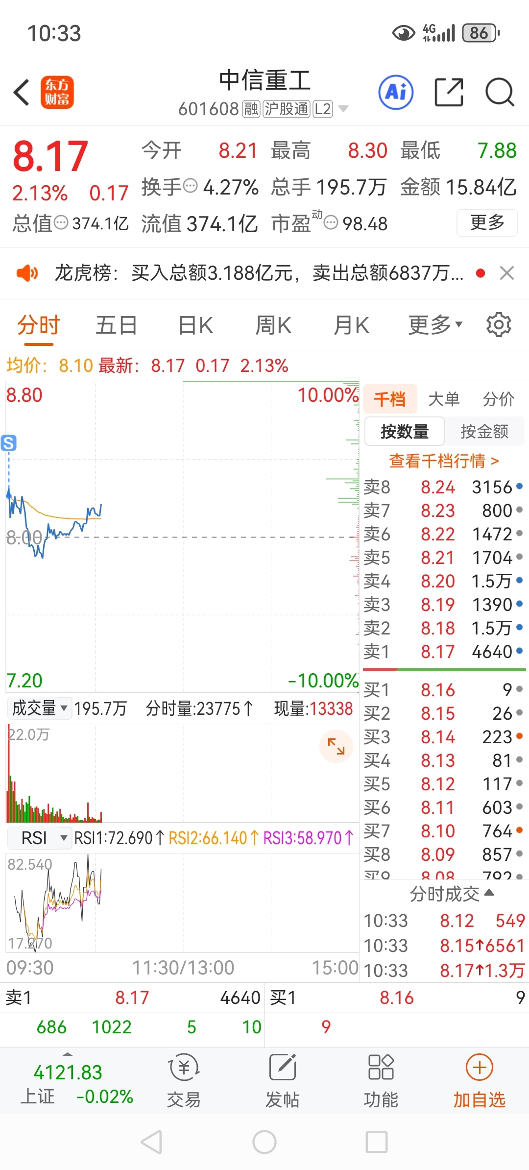 $中信重工(SH601608)$ 早盘出了,择点再接,先去喝酒了。