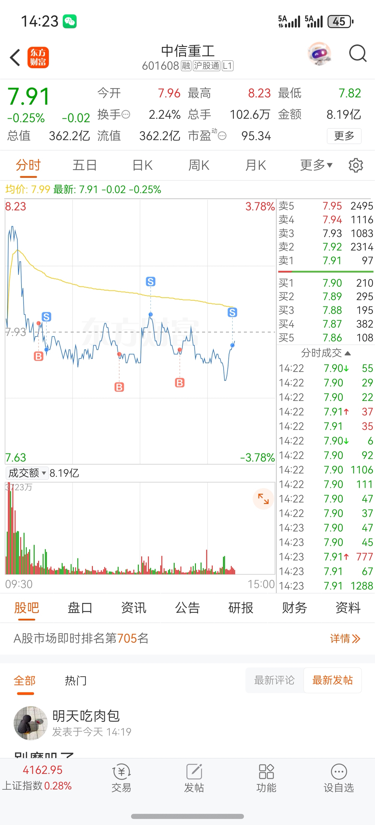 $中信重工(SH601608)$ 一天三次T也是难受,挣不到几个钱