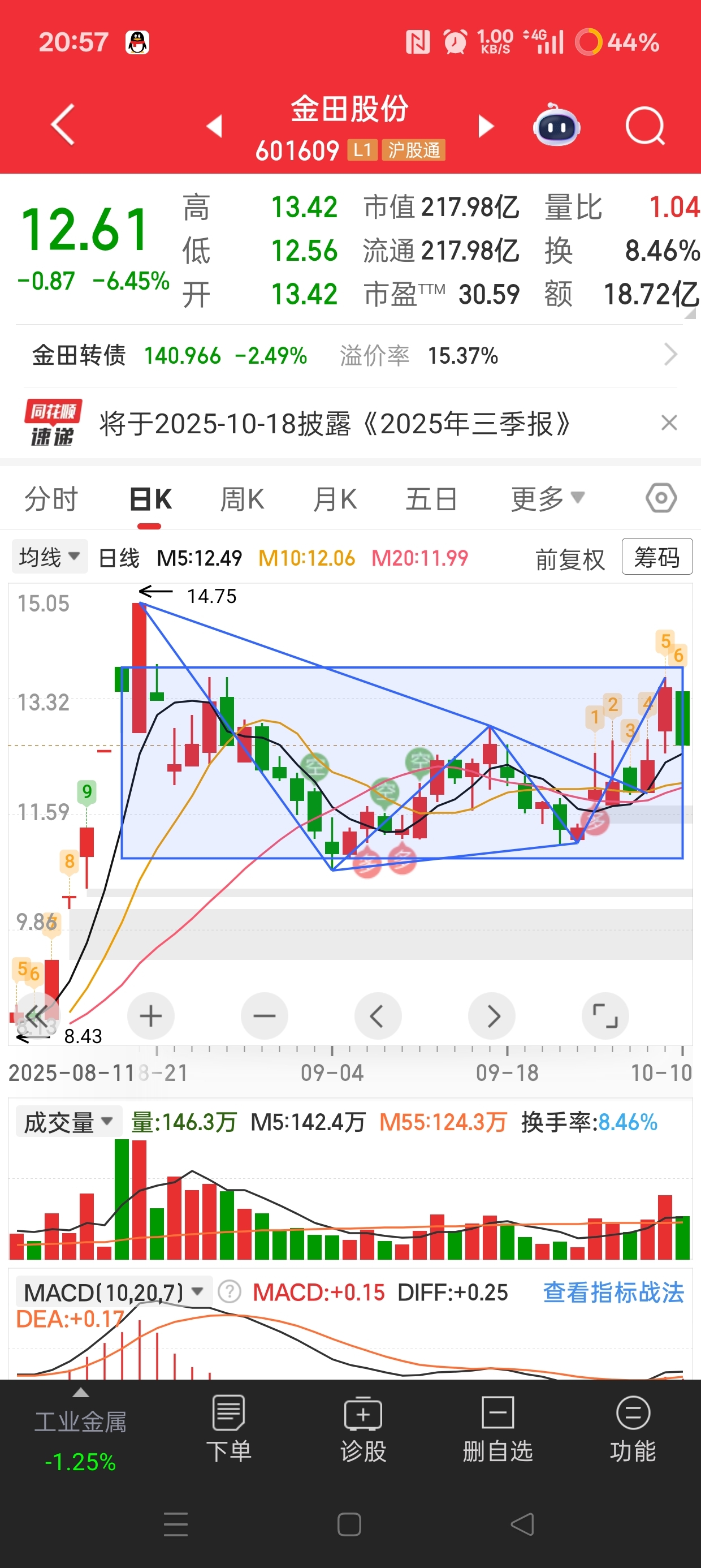 $金田股份(SH601609)$ 下周有可能会涨,也有可能会跌,但总体涨的几率大概有60%