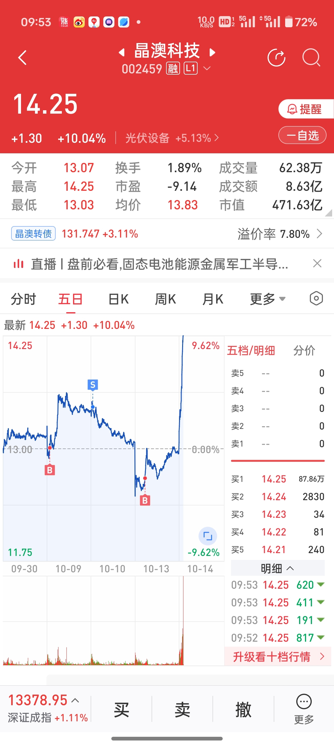 今天爽了,昨天金田卖飞买了晶澳,今天涨停