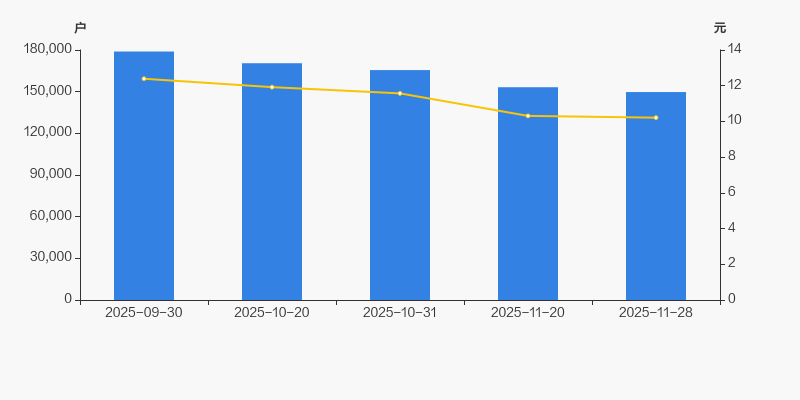 2025年9月30日至今,公司股东户数显著下降,区间跌幅为16.32%。2025年9月30日至2025年11月28日区间股价下降17.59%。