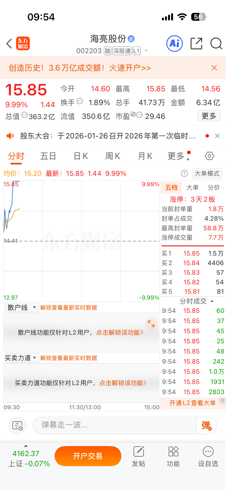 你大爷涨停了