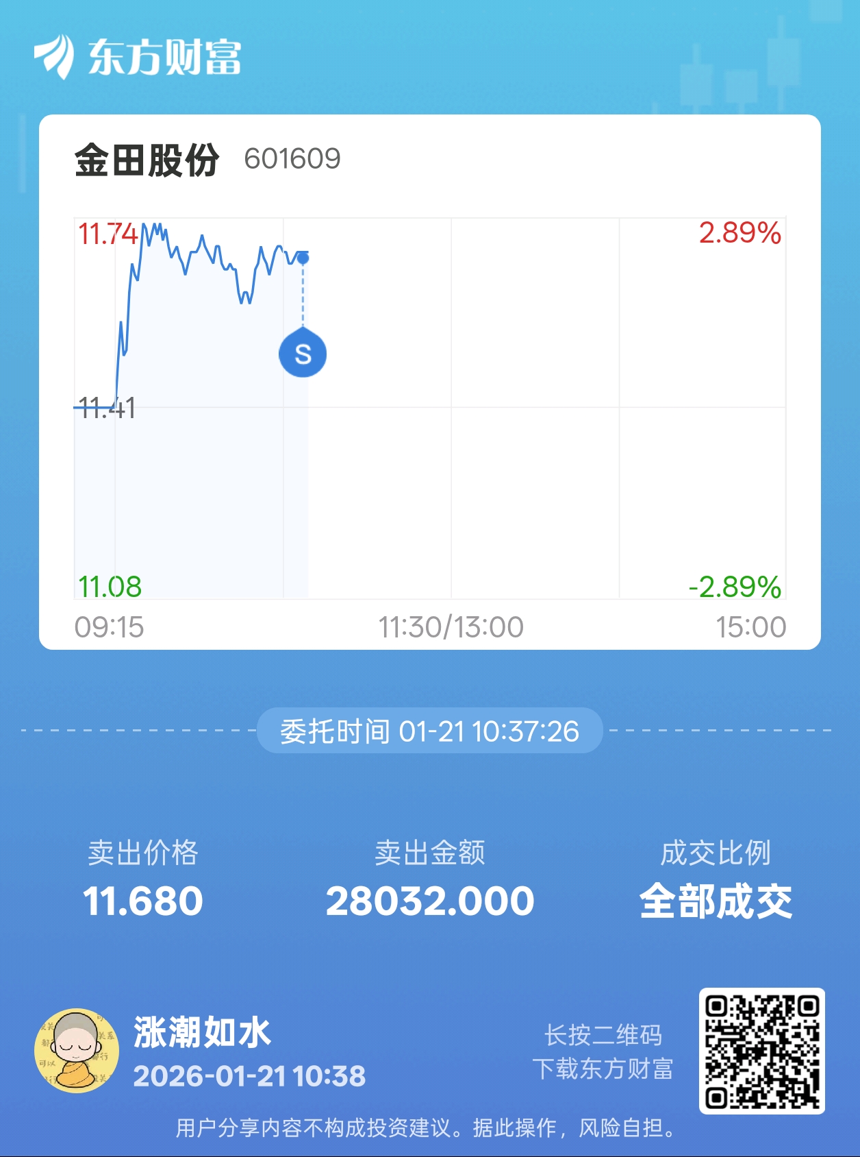 $金田股份(SH601609)$ 一日游, 留下的发财