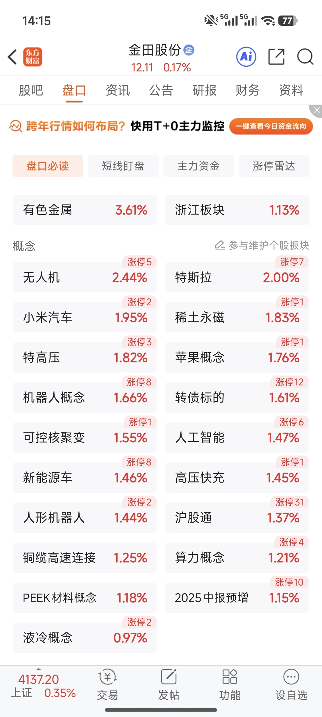 $金田股份(SH601609)$ 哪个概念比你低?还想绿?我真密码服了。