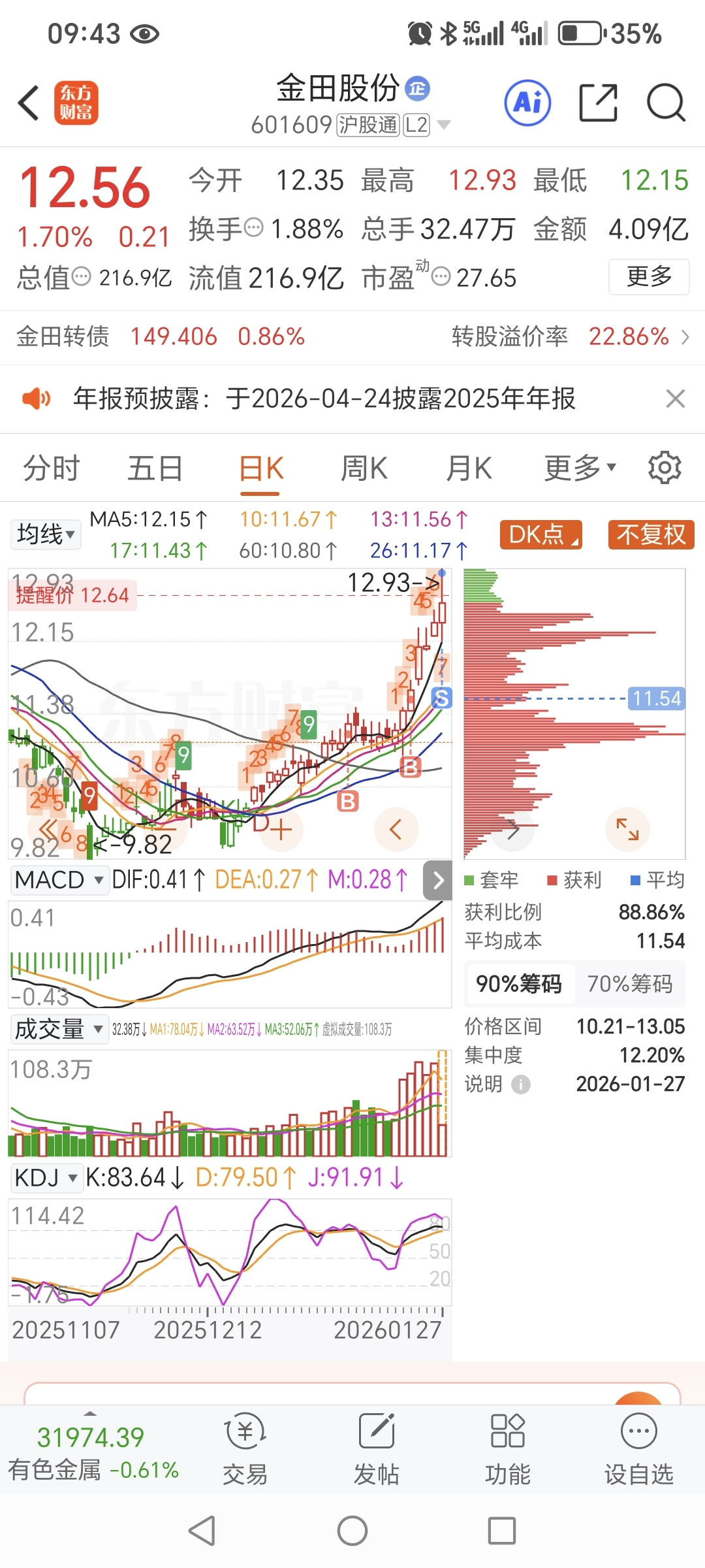 $金田股份(SH601609)$ 爽歪歪,留下的发财,留点底仓