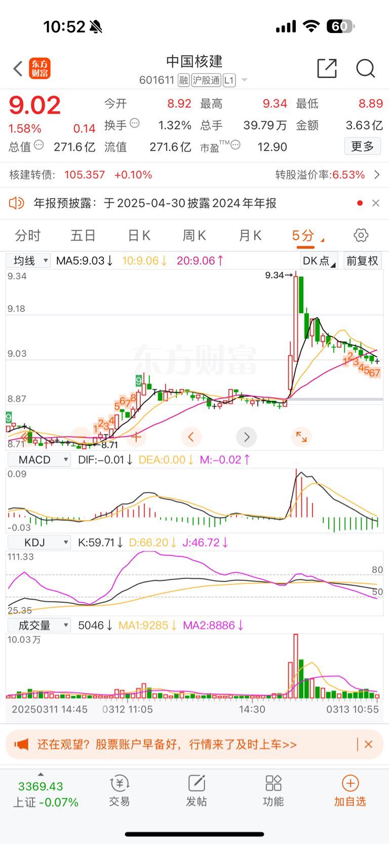 $中国核建(SH601611)$ 你个初生,你这走势是人么?我阐述你的似梦。