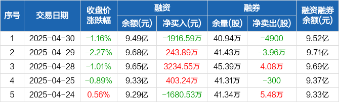 中国核建:融资净偿还1916.59万元,融资余额9.49亿元(04-30)