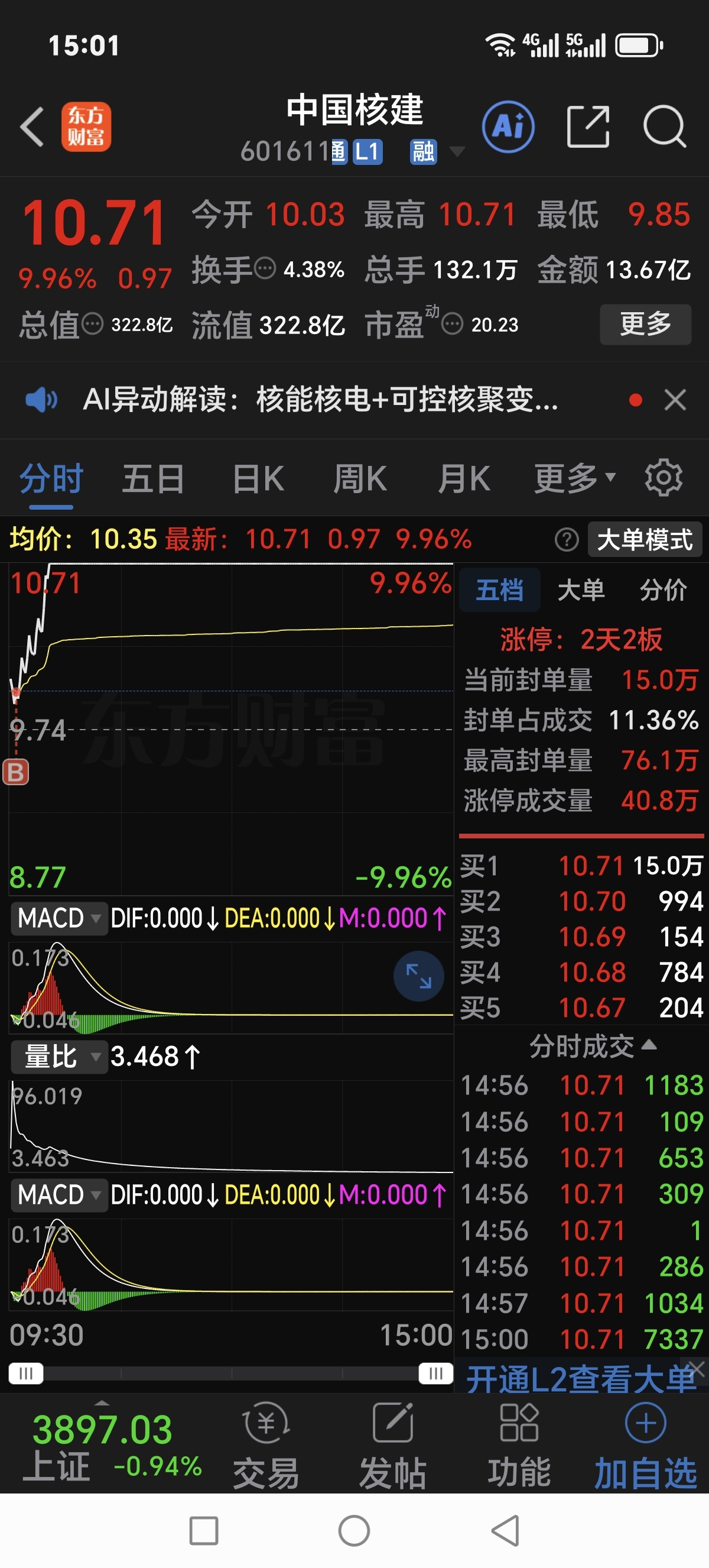 $中国核建(SH601611)$ 早盘量比达3.9,红盘涨1-2。跟主力杀入,享受主升浪。