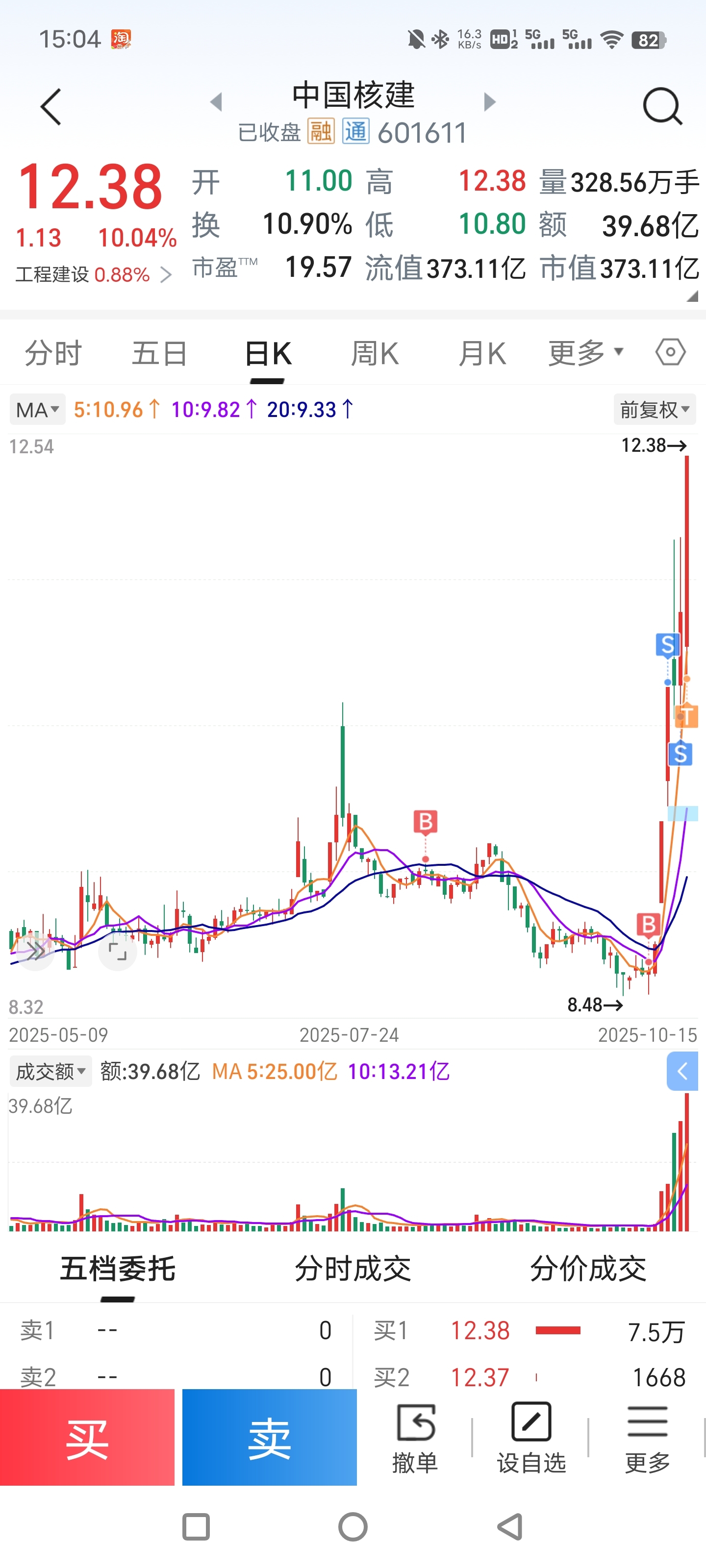 $中国核建(SH601611)$ 前面卖飞6层仓,今天高位补仓了