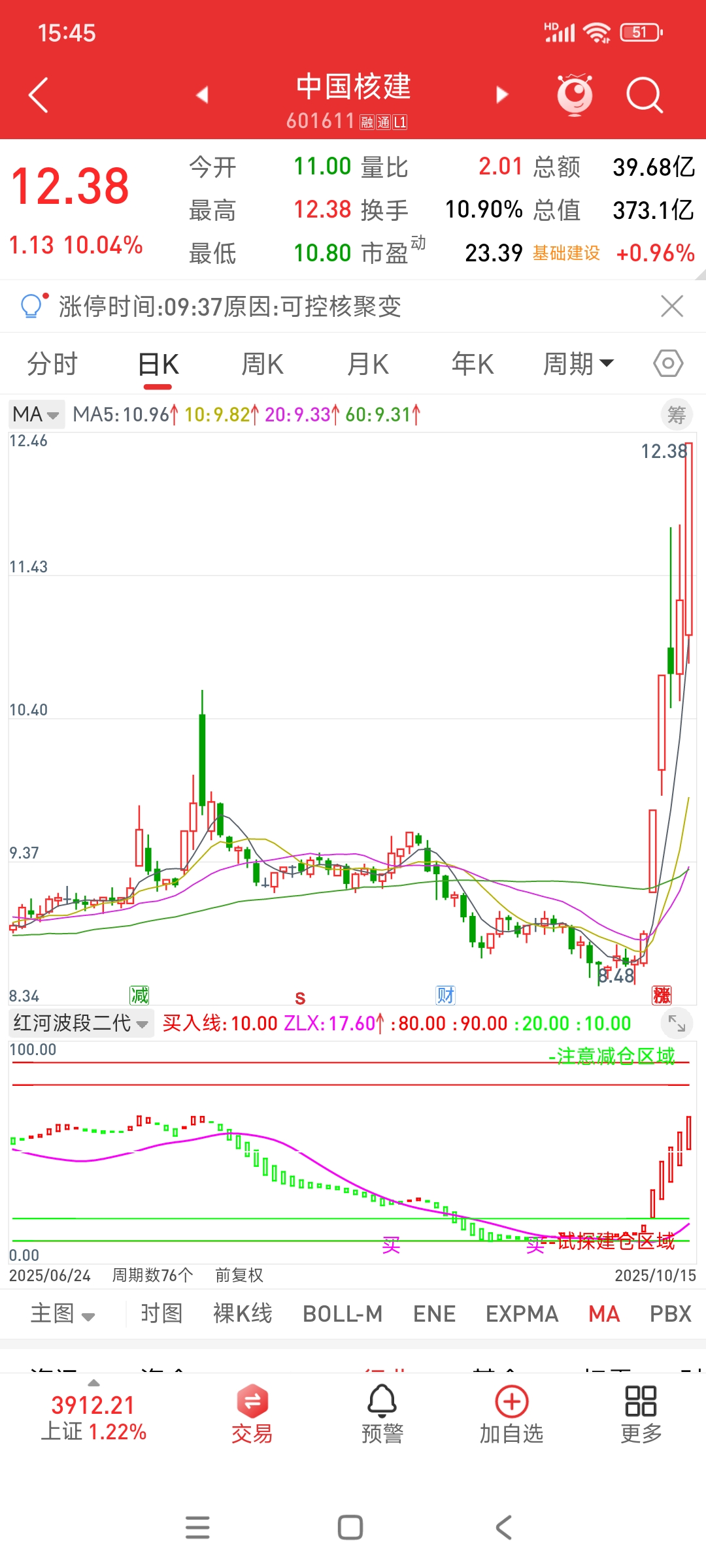 $中国核建(SH601611)$ 昨天说了,红柱延续,继续看涨,毕竟红柱不停,上涨不止,红柱拉长,加速不止,继续冲