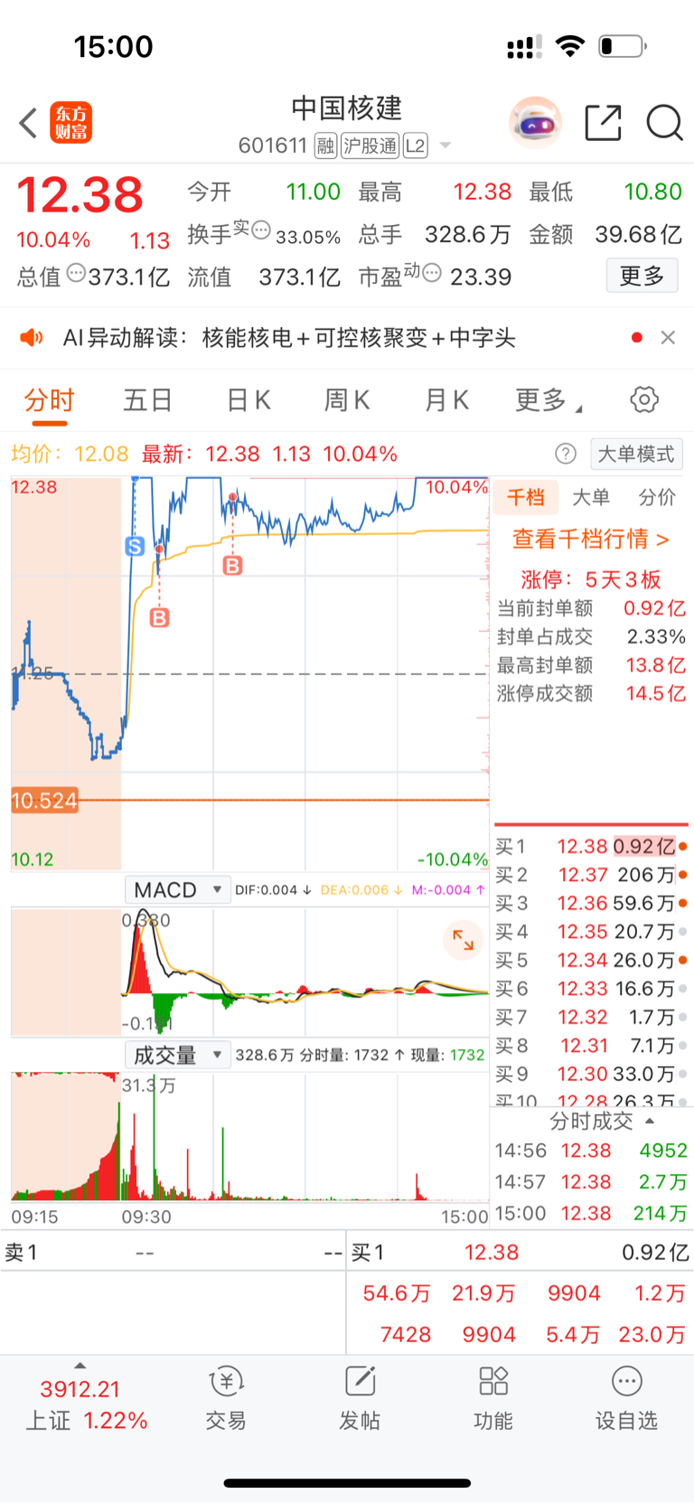 $中国核建(SH601611)$ 本月看好多少?明天可以抄底加仓,如果明天不绿持续看好,80%仓位进去。