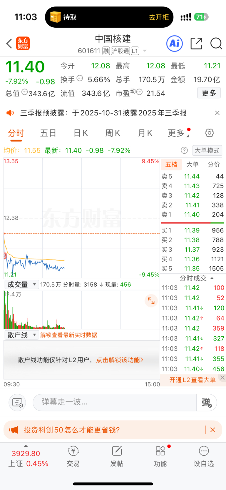 $中国核建(SH601611)$ 这tm谁卖给我的