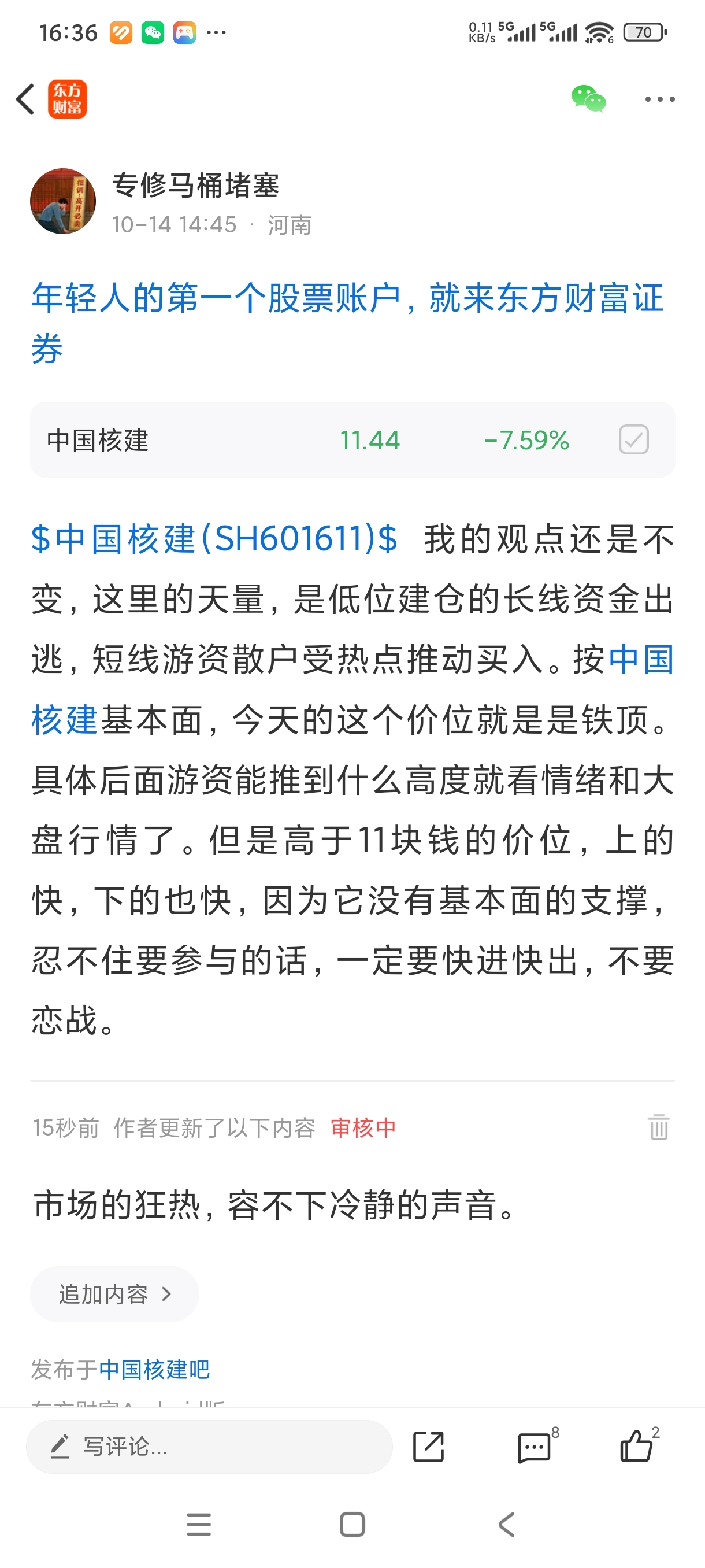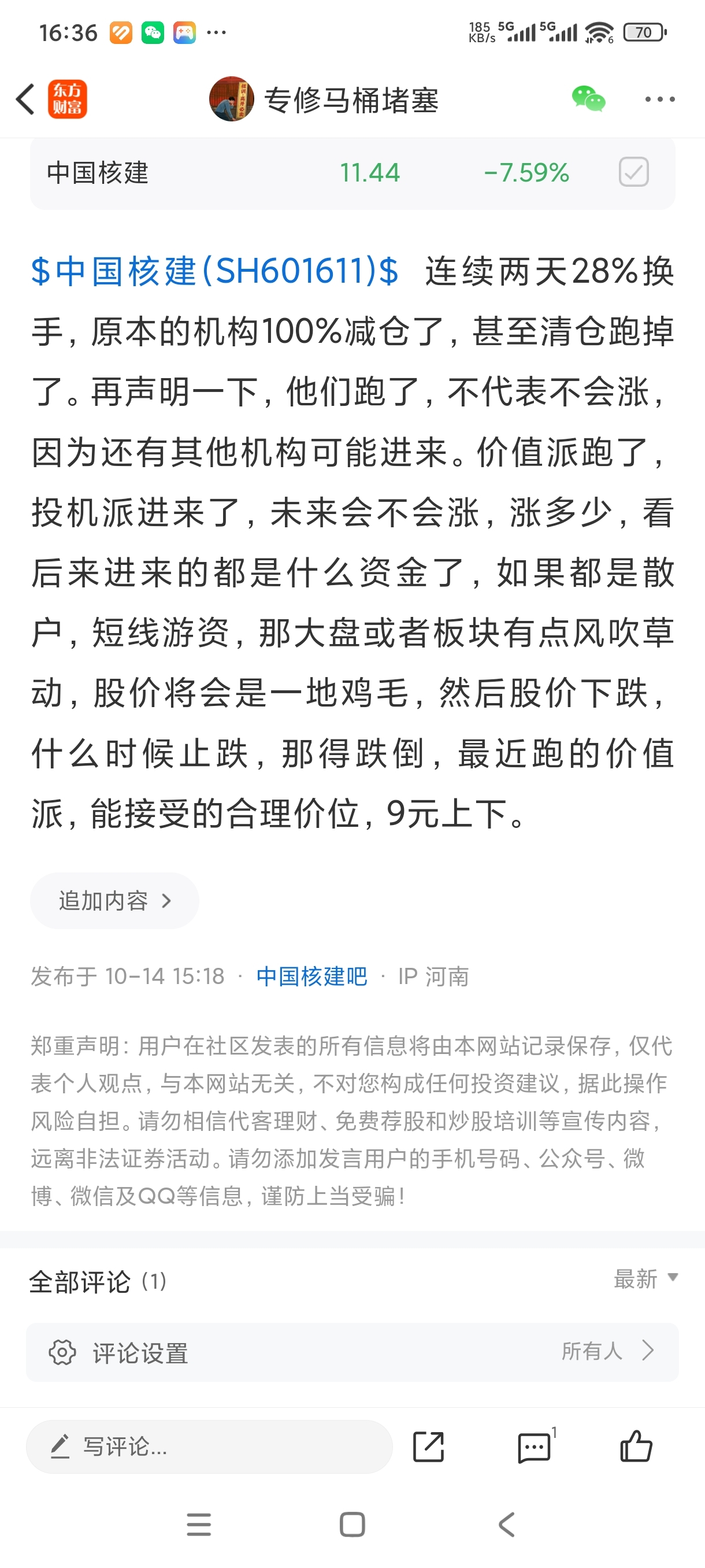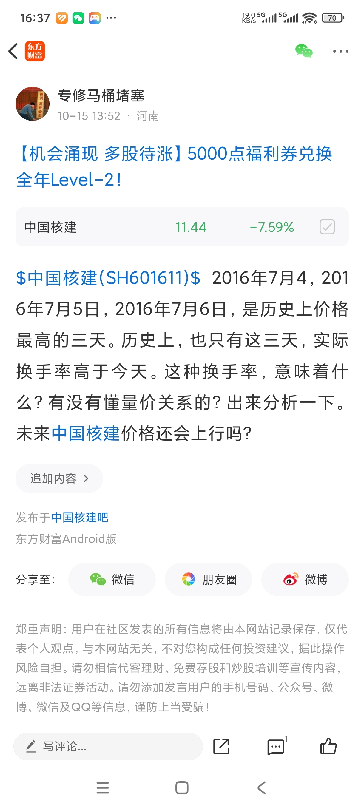 温馨提示: 1.根据《证券法》规定,禁止编造、传播虚假信息或者误导性信息,扰乱证券市场;2.用户在本社区发表的所有资料、言论等仅代表个人观点,与本网站立场无关,不对您构成任何投资建议。用户应基于自己的独立判断,自行决定证券投资并承担相应风险。《东方财富社区管理规定》