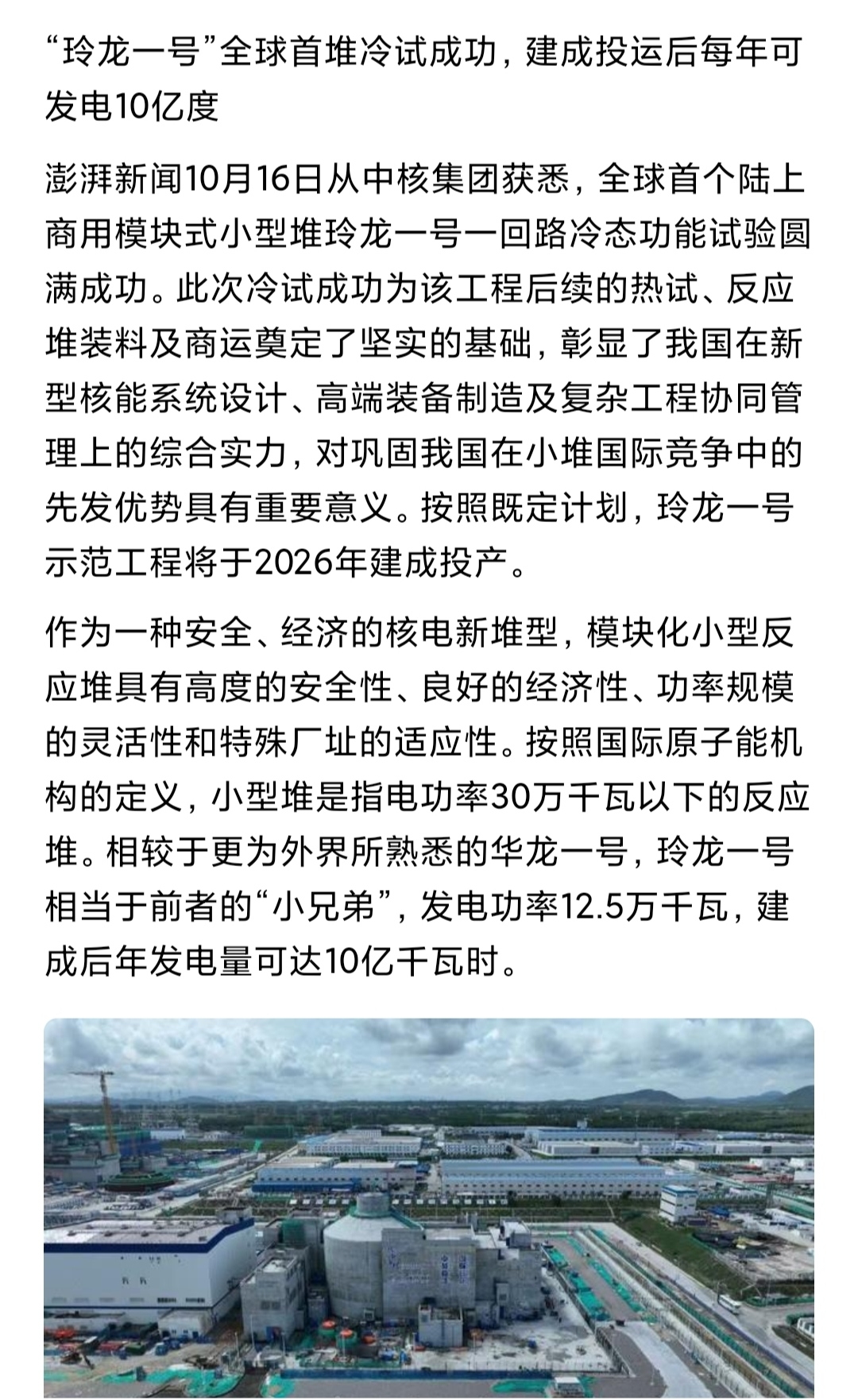 $中国核建(SH601611)$ 玲珑一号10月16日宣布成功,安装单位核建