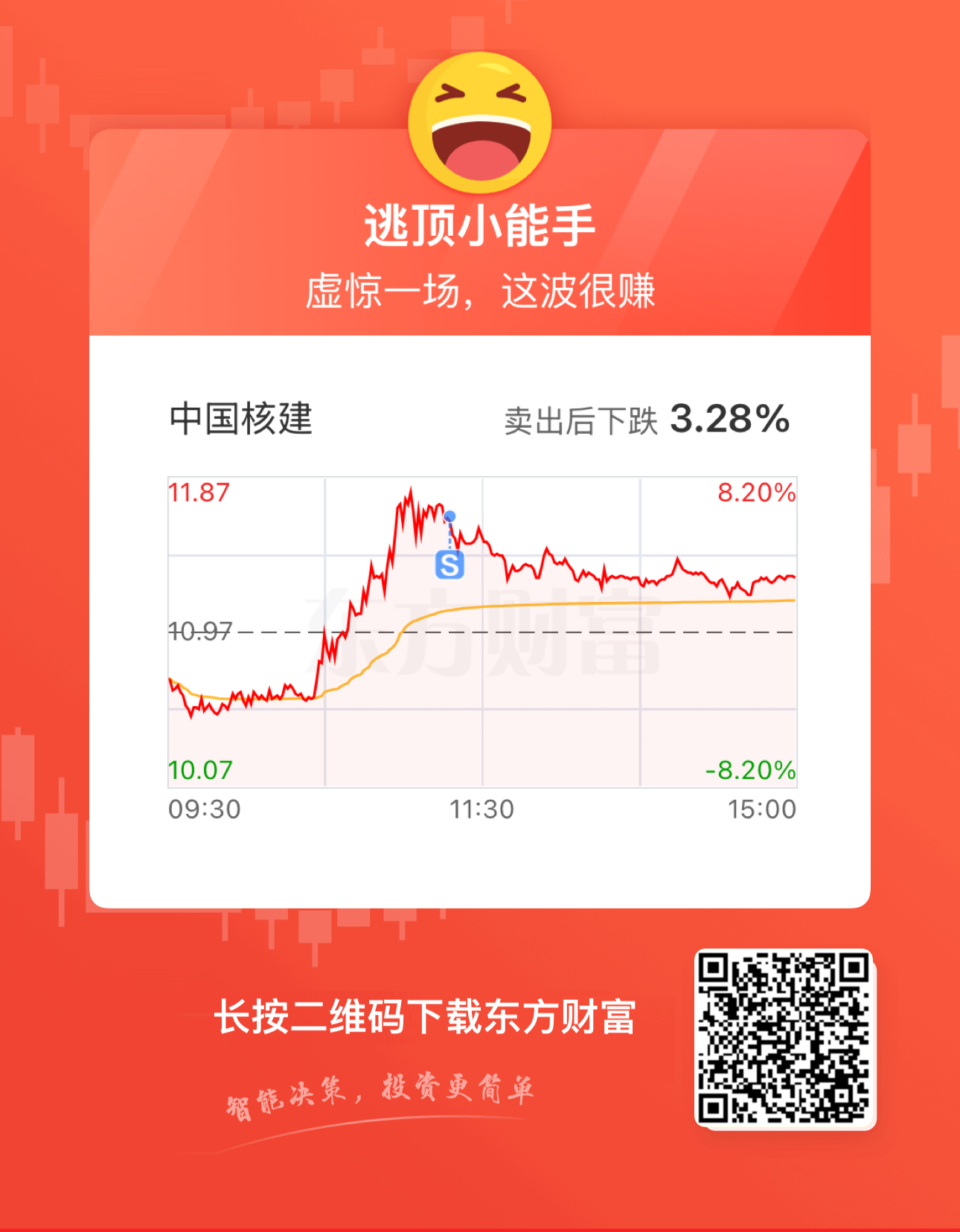 $中国核建(SH601611)$ 拿了五天,挂了11.10元亏本走然后又马上撤回,第六感感觉今天应该不止这个价,终于拉在11.70盈利走人,还好,不然又飞了
