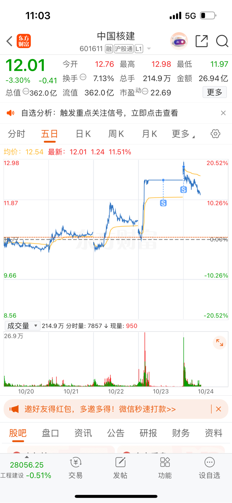 $中国核建(SH601611)$ 看好做踢降低成本有利于稳定持股