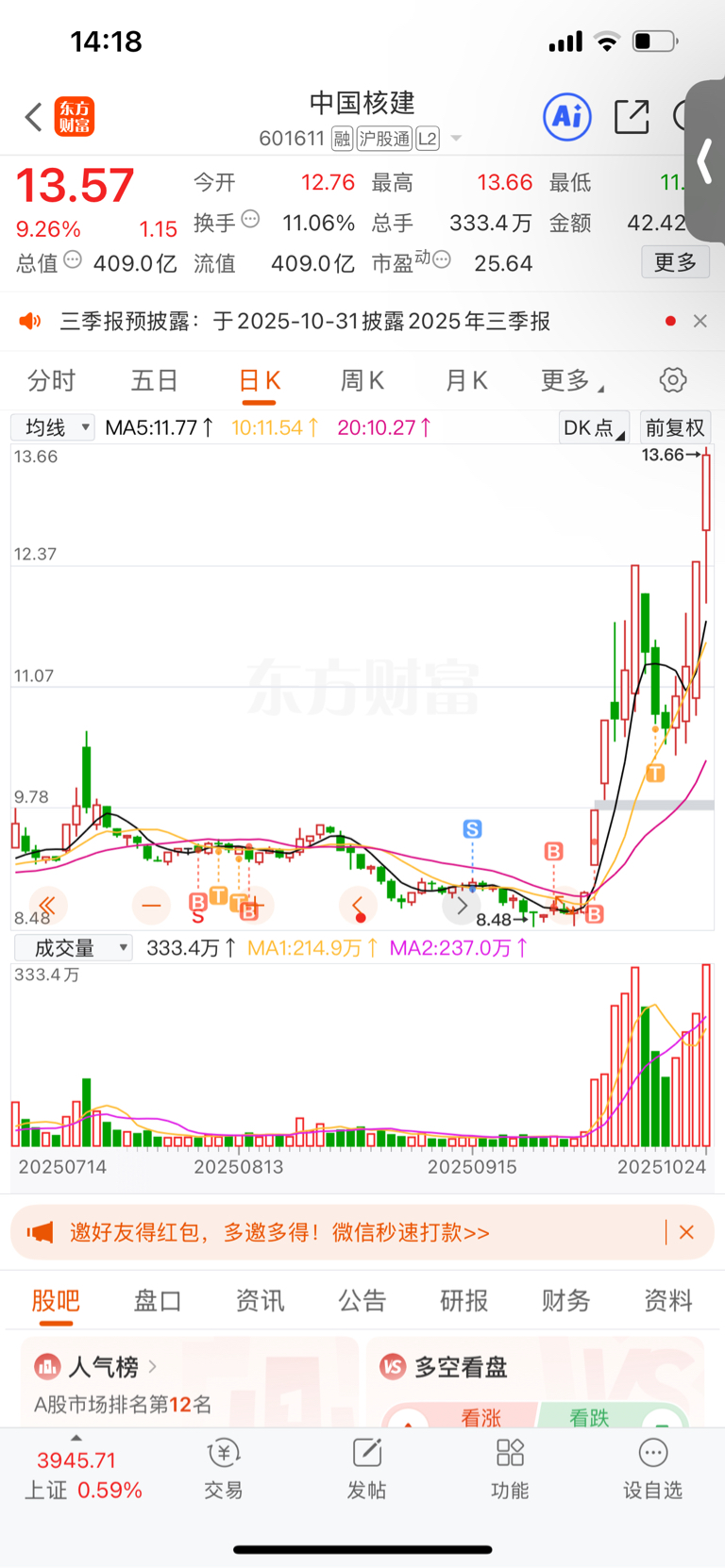 $中国核建(SH601611)$ 天天往下砸,再拉起,手法恶劣啊