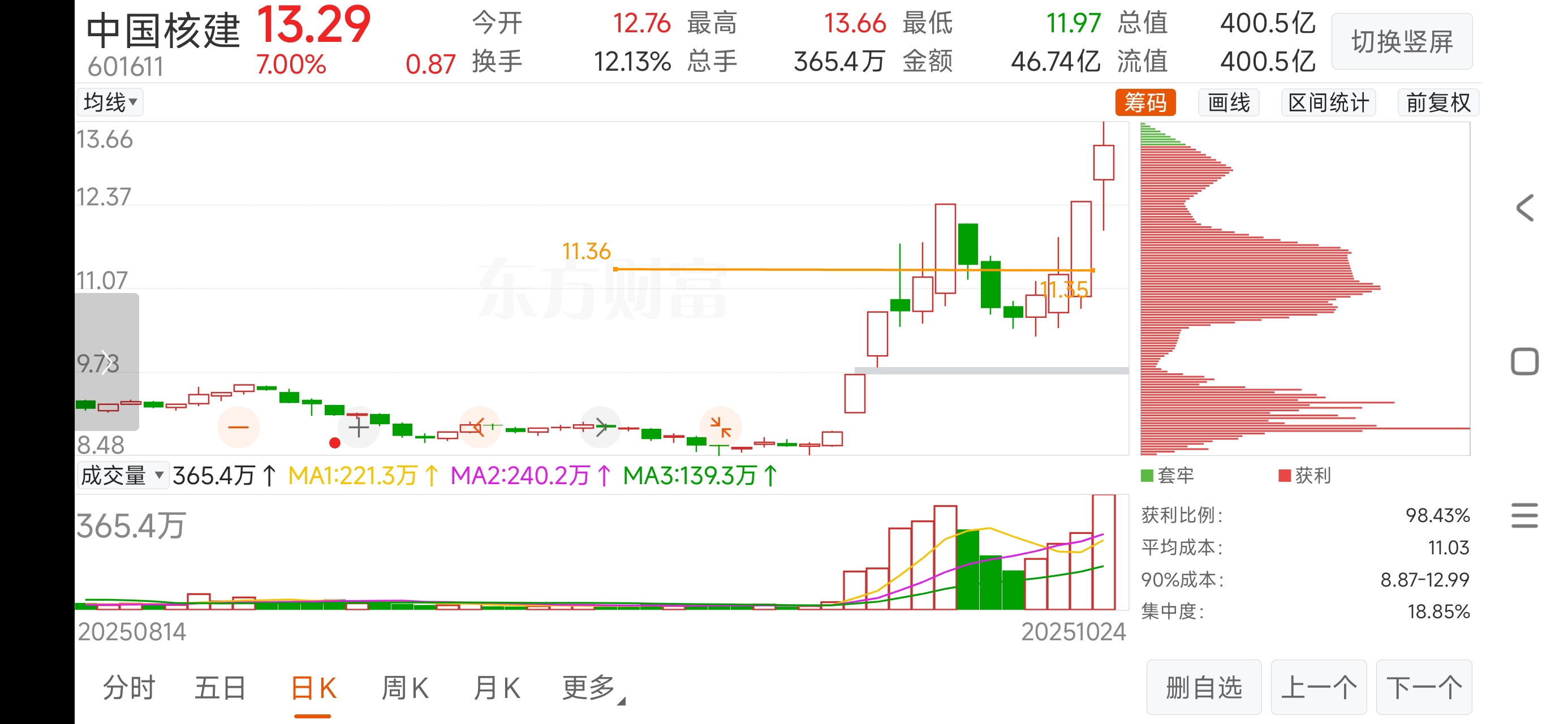 $中国核建(SH601611)$ 此票走势明显强过板块和大盘。现阶段可控核聚变板块龙1位置无疑是中国核建,今天上证刚过新高,中国核建已过高点两天。选票必须在关键节点选最强的,10月末11月初就是他的舞台。
