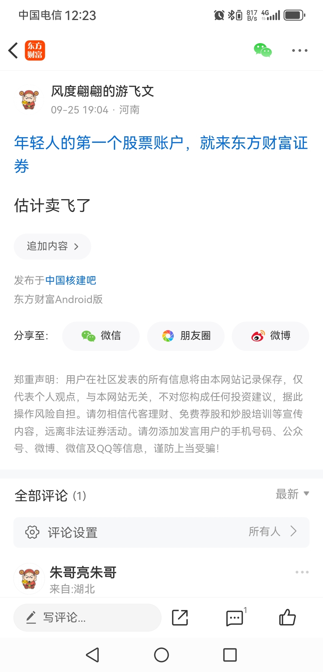 温馨提示: 1.根据《证券法》规定,禁止编造、传播虚假信息或者误导性信息,扰乱证券市场;2.用户在本社区发表的所有资料、言论等仅代表个人观点,与本网站立场无关,不对您构成任何投资建议。用户应基于自己的独立判断,自行决定证券投资并承担相应风险。《东方财富社区管理规定》