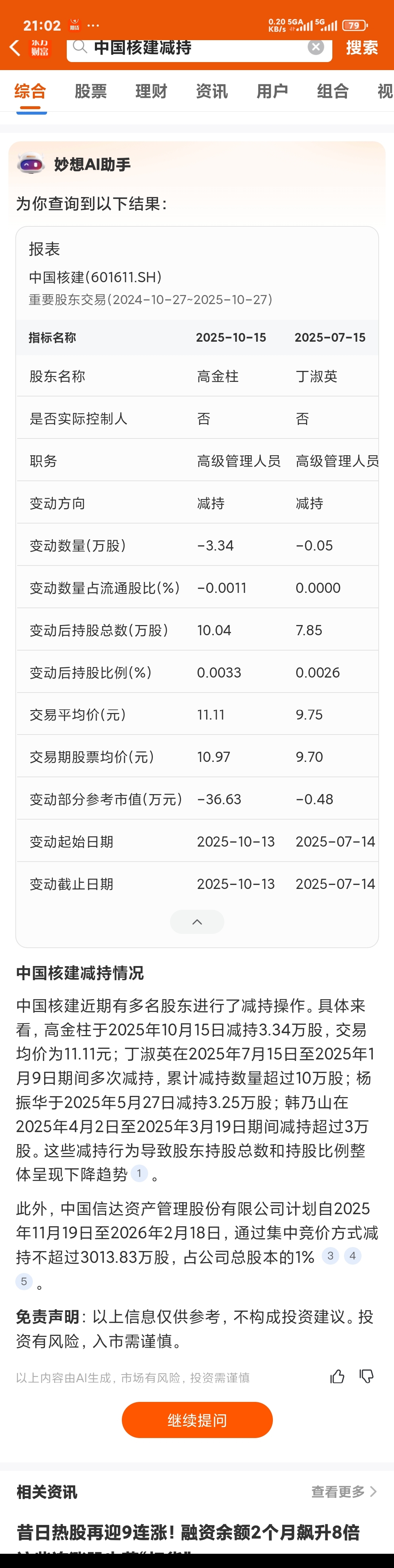 $中国核建(SH601611)$ 减持3.34万股,能对股价有什么影响