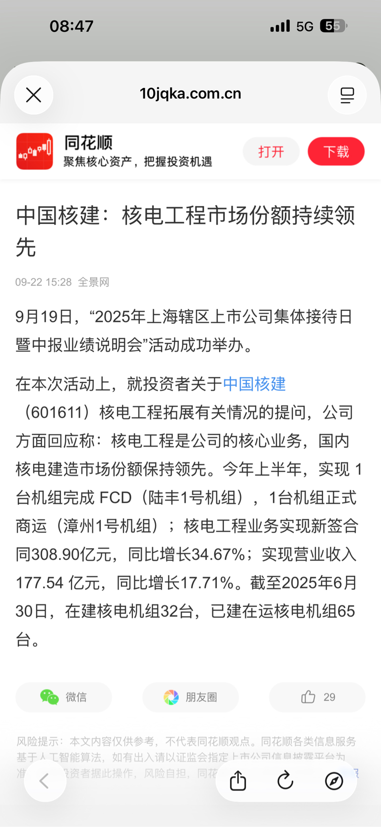 $中国核建(SH601611)$中国核建未来万亿市值,占核电站预算约10%,单台200亿,27号公布5/6机组土建和安装共38亿。