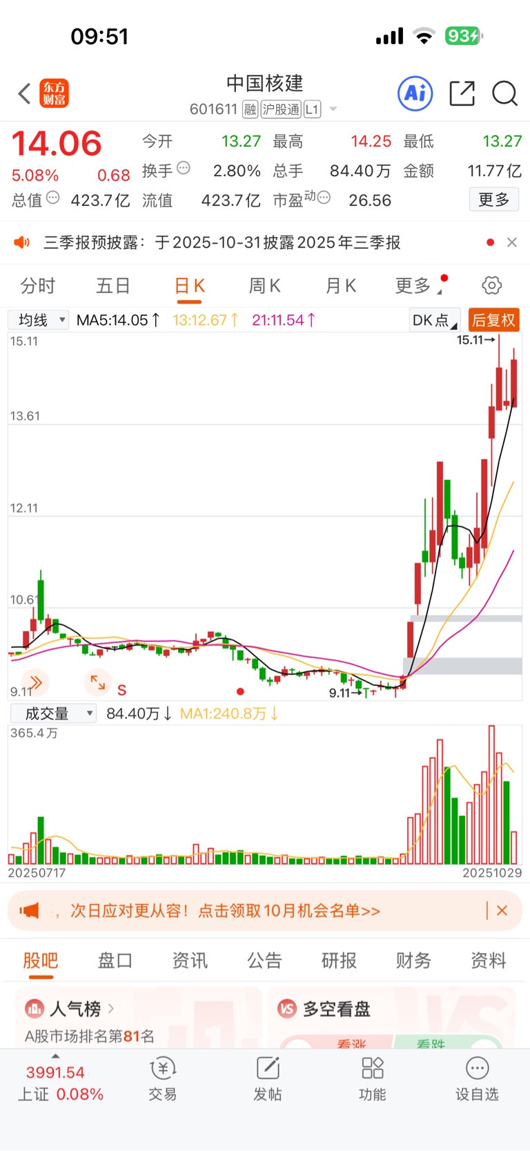 调整结束,全球都缺电,可控核聚变王者归来,年前先突破历史新高,未来40万亿美元市场,中国核建万亿市值起步。$中国核建(SH601611)$