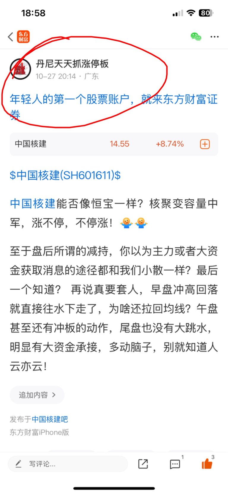 温馨提示: 1.根据《证券法》规定,禁止编造、传播虚假信息或者误导性信息,扰乱证券市场;2.用户在本社区发表的所有资料、言论等仅代表个人观点,与本网站立场无关,不对您构成任何投资建议。用户应基于自己的独立判断,自行决定证券投资并承担相应风险。《东方财富社区管理规定》