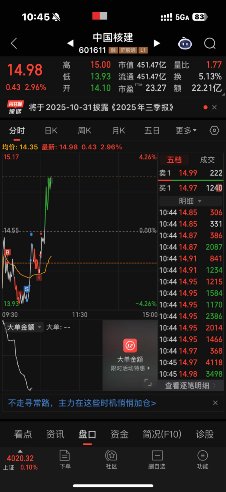 $中国核建(SH601611)$ 还好接回来,