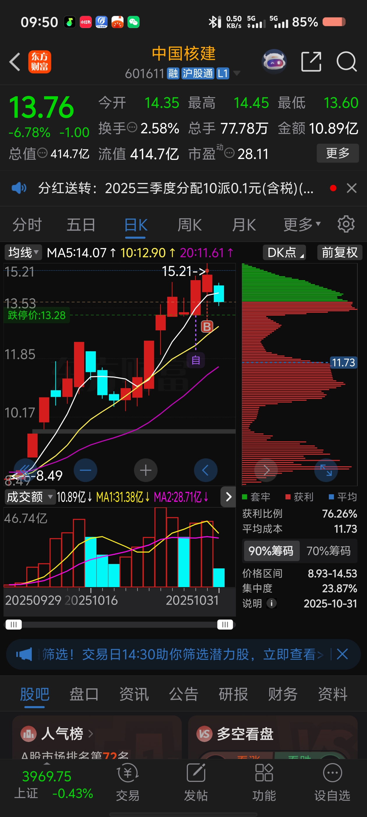 $中国核建(SH601611)$ 买在最高