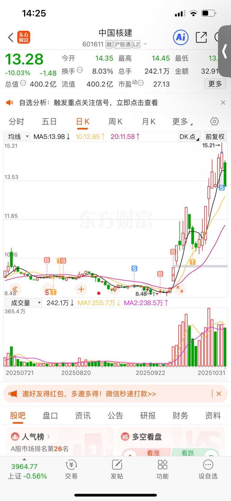 $中国核建(SH601611)$  今天跌停板出货法,今晚都是拉萨买入榜
