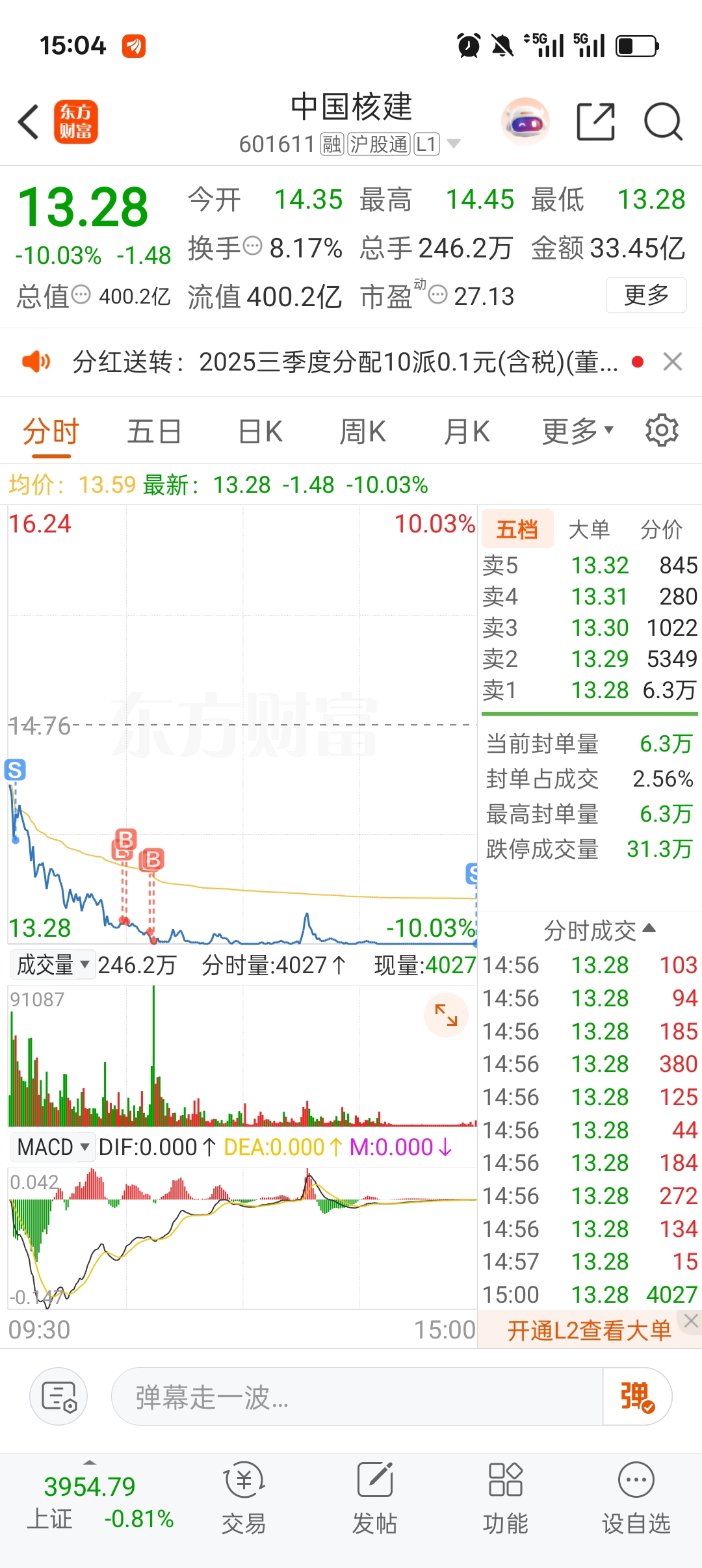 $中国核建(SH601611)$ 成交了???封单5万多我挂的一手!特么成交了???