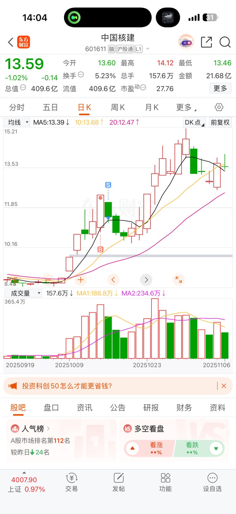 $中国核建(SH601611)$ 谁知道是不是走老鸭头走势?来个老手分析下