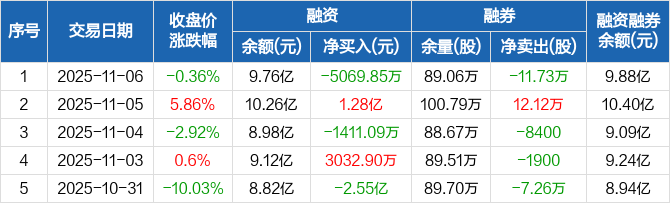 中国核建:融资净偿还5069.85万元,融资余额9.76亿元(11-06)