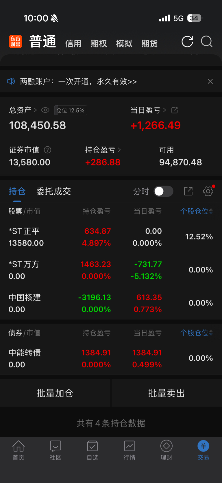 $中国核建(SH601611)$ 割肉 重仓30个 怼这个 居然亏 资金都撤了 扔10个 玩儿一下 转债 每天1000就行了 或者买ST