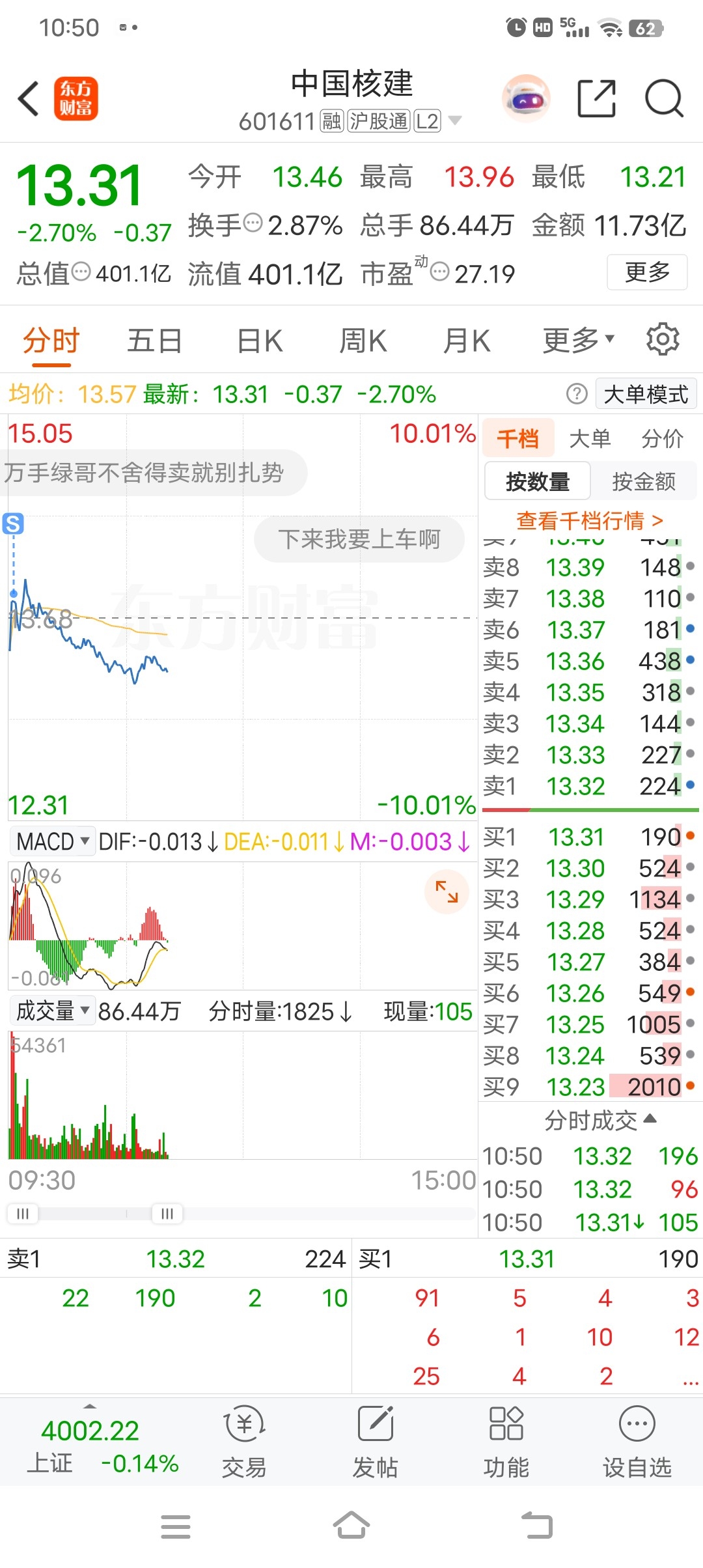$中国核建(SH601611)$ 早盘跑了留下的兄弟发财