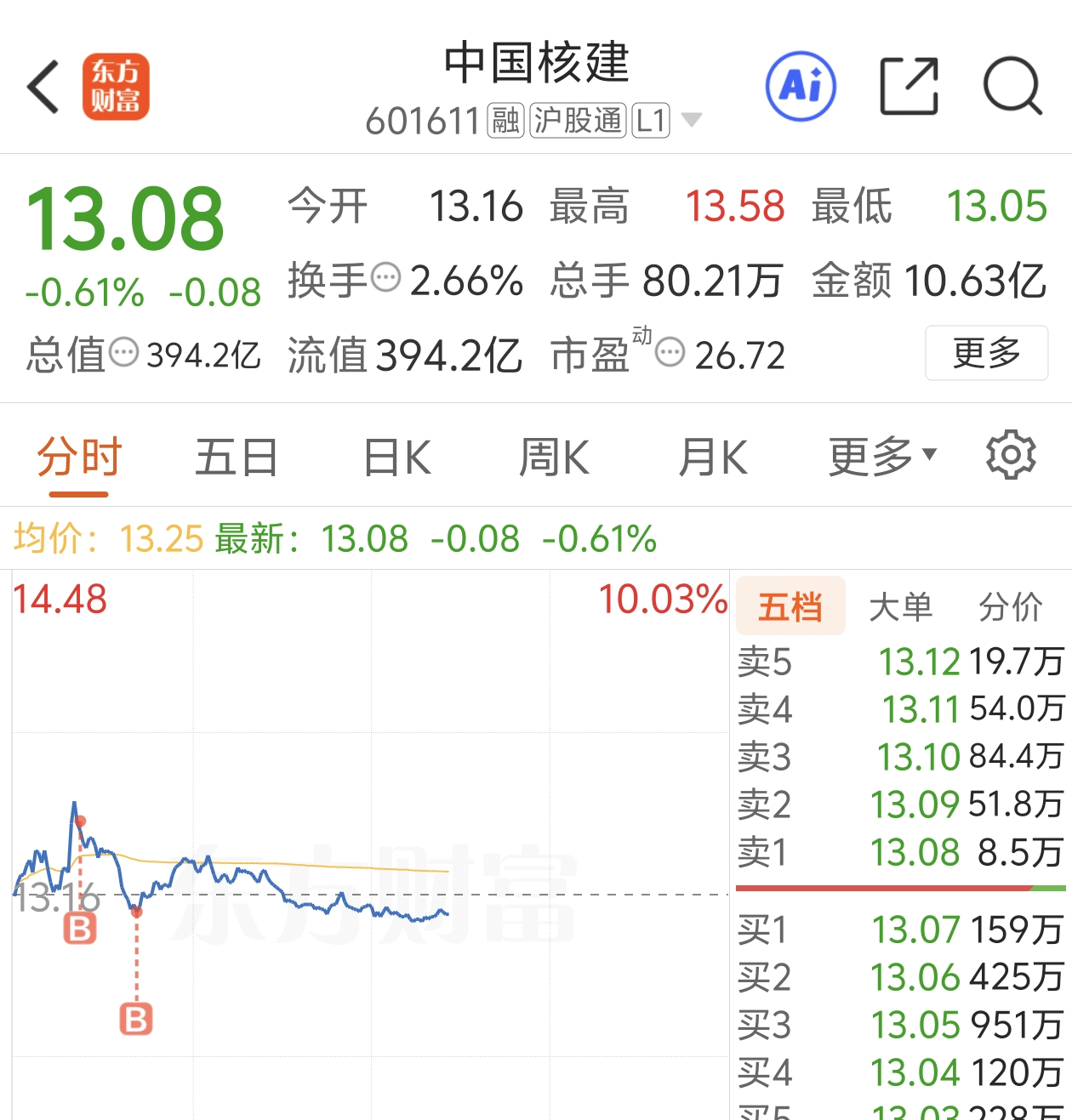 $中国核建(SH601611)$ 兄弟们,对不住了,都是我买蹦的